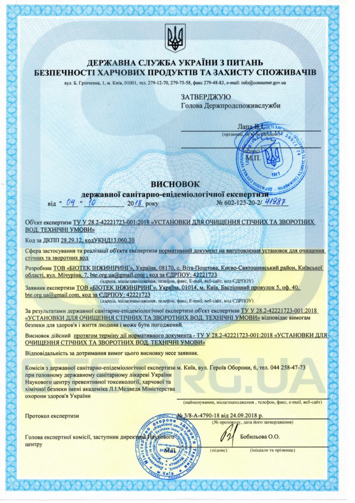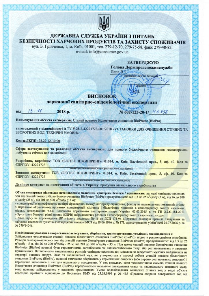 Висновок на станції повного біологічного очищення BioProtec